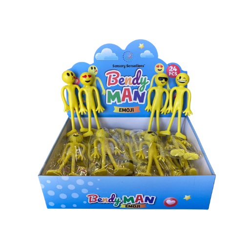 The Bendy Emoji Men come in a display pack of 24 pieces for retailers. Price is per display.