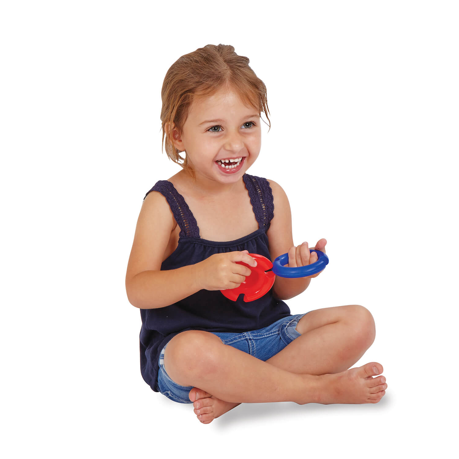 Smooth, bright and fun to hold, kids have such a great time with these big chubby links. Make a chain, a house or a free-form design. Pull them apart and start over again. So many possibilities expand the imagination and reward young creative minds! Open-ended play for boys and girls. For colour matching, motor skills, thinking skills, visual development, and hand-eye coordination.